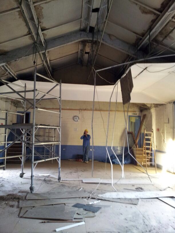 Historical images from past events and hall renovations.
